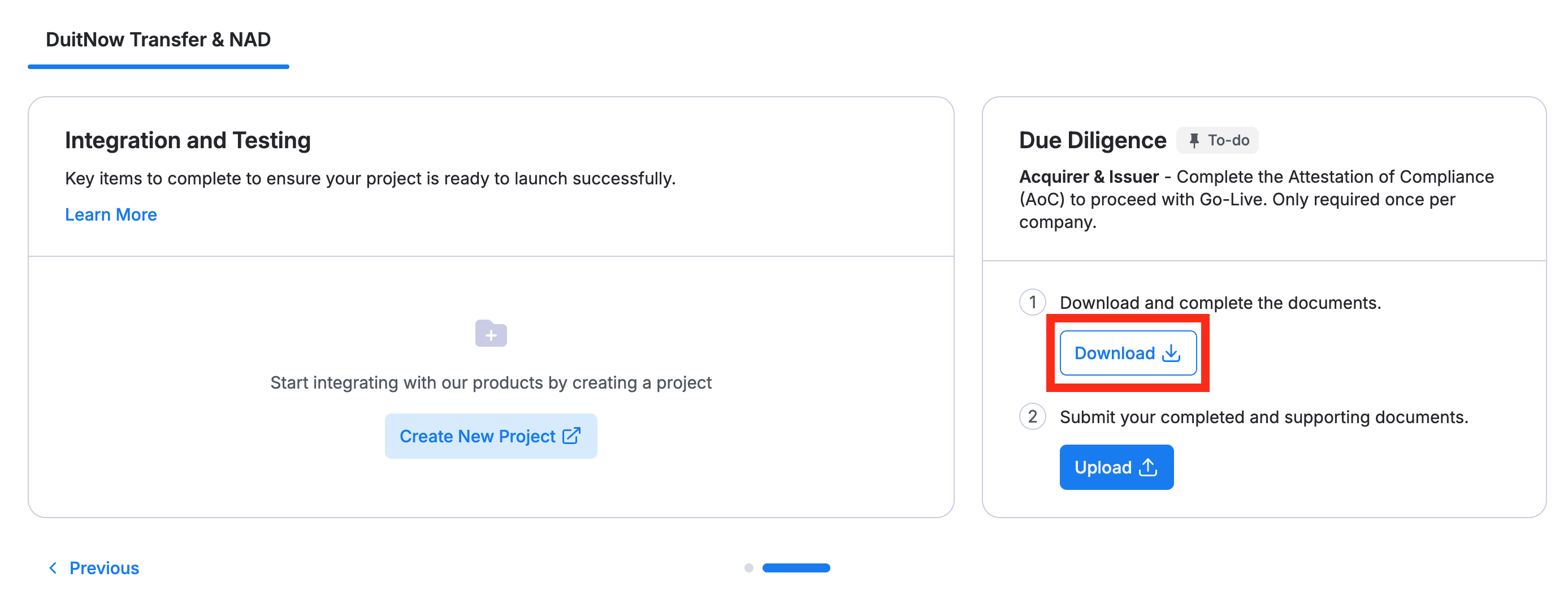 The Due Diligence widget will appear. Click Download to retrieve the required files.