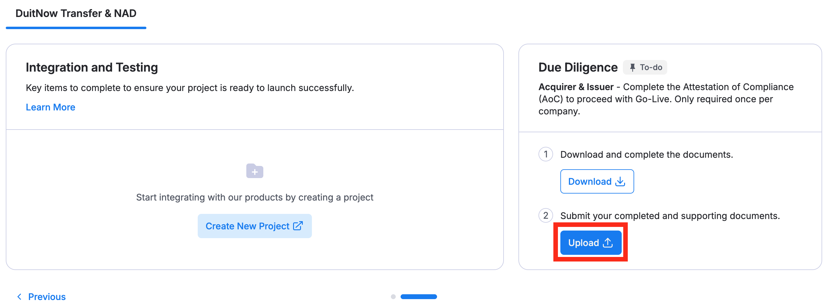 Steps to submit and complete Due Diligence