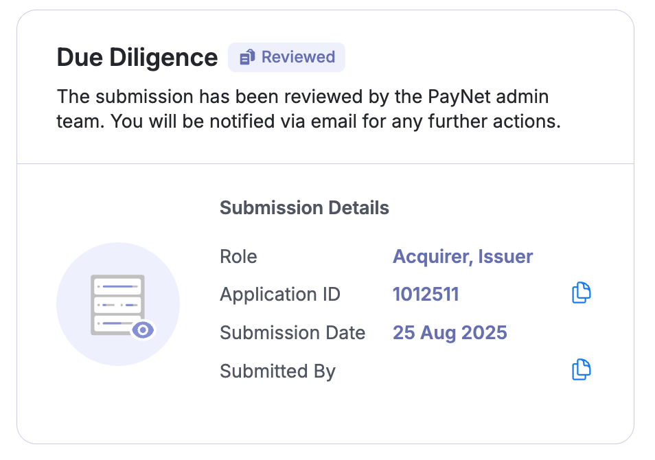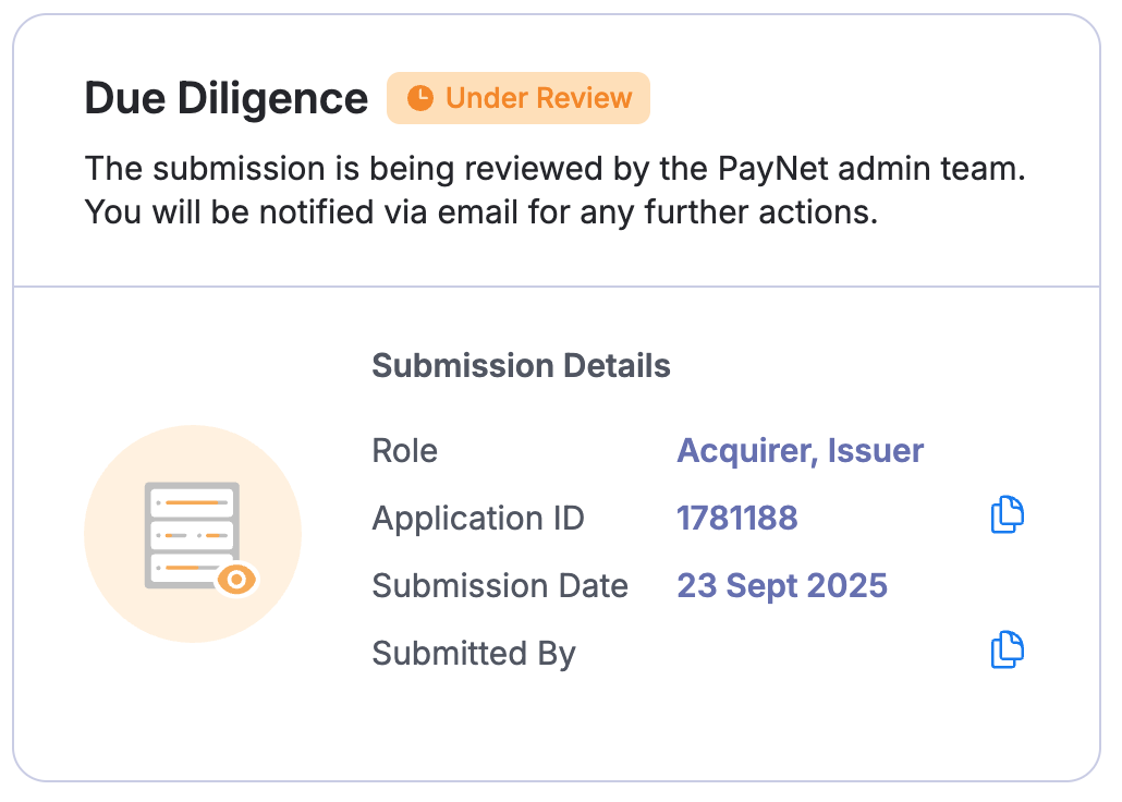In PayNet’s context, Due Diligence generally refers to the assessment and verification process PayNet performs on new or existing participants (e.g., banks, EMIs, TPAs, fintechs, acquirers, issuers) before granting them access to PayNet’s payment ecosystems like DuitNow, RPP, MyDebit, or JomPAY.