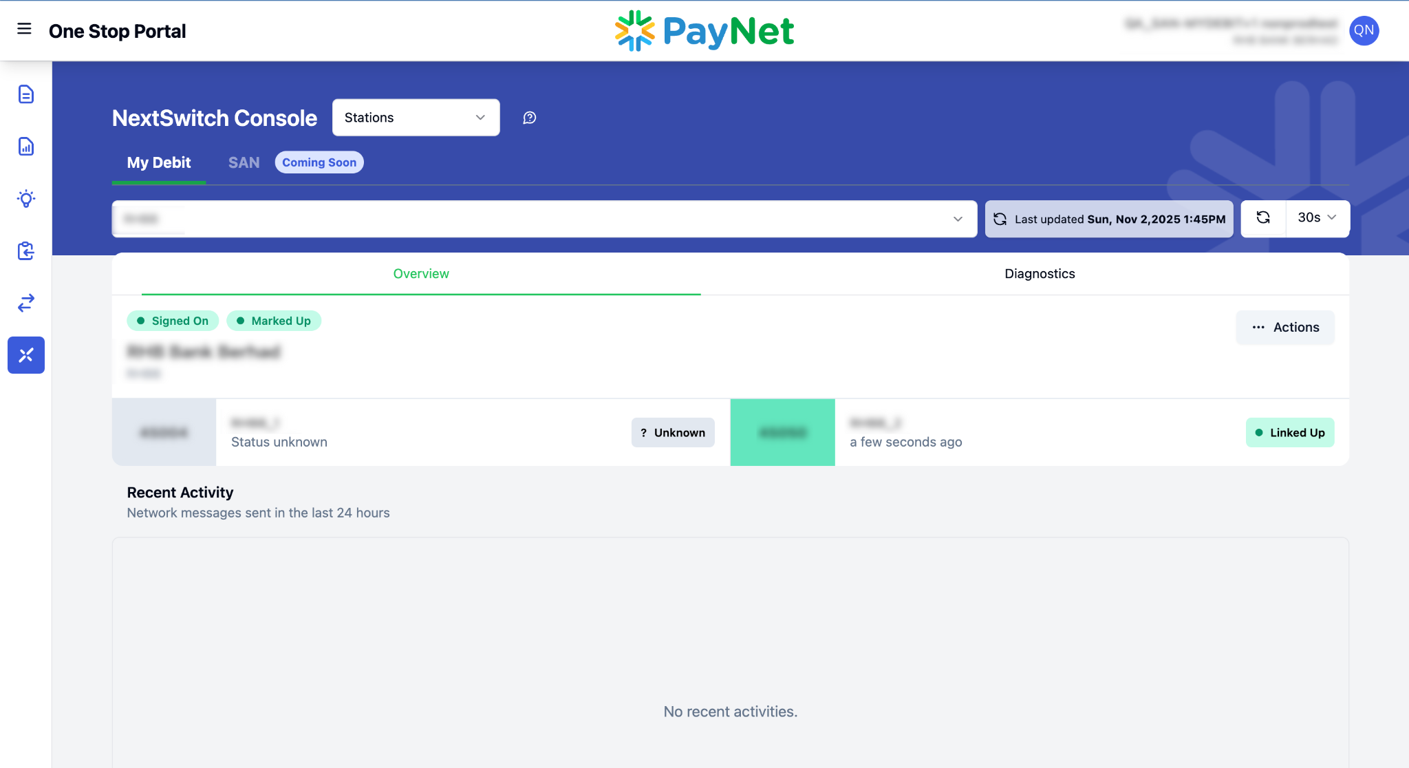 2. The stations management page has two sections — Overview & Diagnostics.